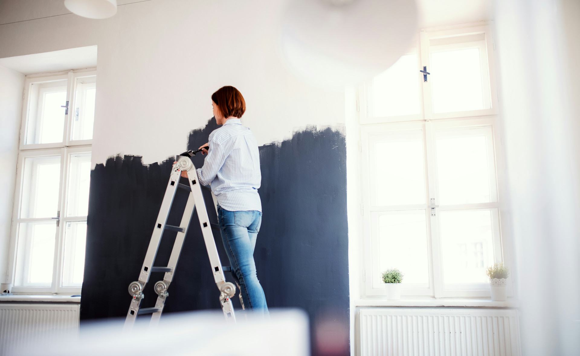 Hvis du maler to farver, der mødes – for eksempel en mørk væg mod en lys – er præcision afgørende. Brug en laserlinje eller vaterpas til at markere overgangen, og sæt tapen præcist. Mal først den lyseste farve, lad den tørre helt, og sæt derefter tapen, før du maler den mørkere farve.